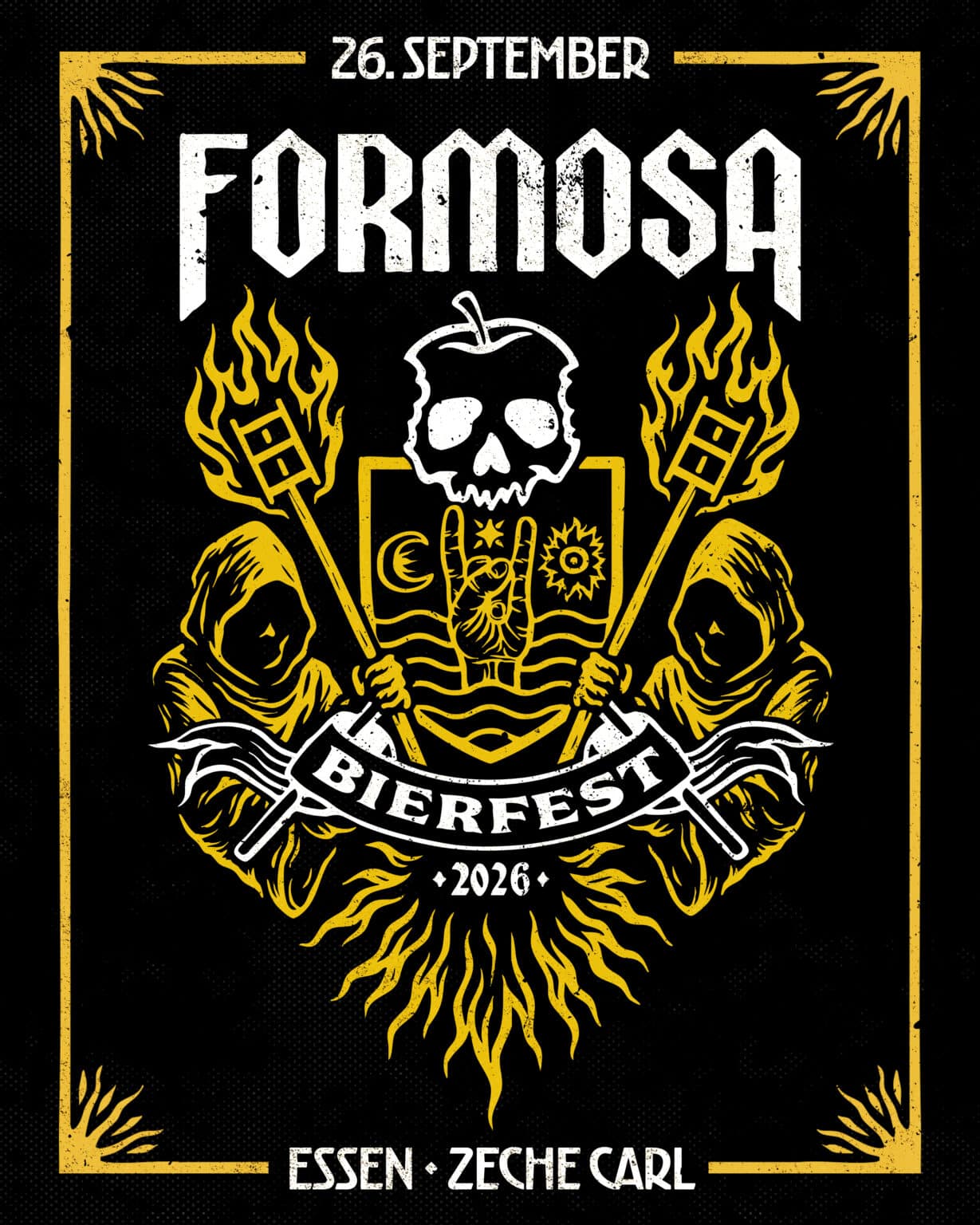 Bereits zum fünften Mal findet am 26. September das FORMOSA Bierfest statt. Nach ausverkauften Edition 2024 & 2025 freuen wir uns auch dieses Jahr mit 500 Freunden zu feiern. Natürlich wird es neben erstklassigen Bands auch wieder ein wildes Rahmenprogramm geben und, wie sollte es auch bei einem Bierfest anders sein… viele viele Liter feinsten Gerstensaft. Selbstgebaute Spiele wie zum Beispiel in diesem Jahr ein Riesen Jenga oder auch Wurfspiele laden zum Verweilen ein bei einem leckeren kühlen Bier. Selbstverständlich wird das Bier dieses Jahr wieder vom FORMOSA Gitarrist & Braumeister Nik Beer gebraut. Der Umtrunk mit dem leckeren Gerstengebräu ist schließlich Herzstück der gesamten Veranstaltung. Im Festivalbecher 0,4 schmeckt das Bier dann besonders gut. Lineup wirs selbstverständlich killer: More TBA